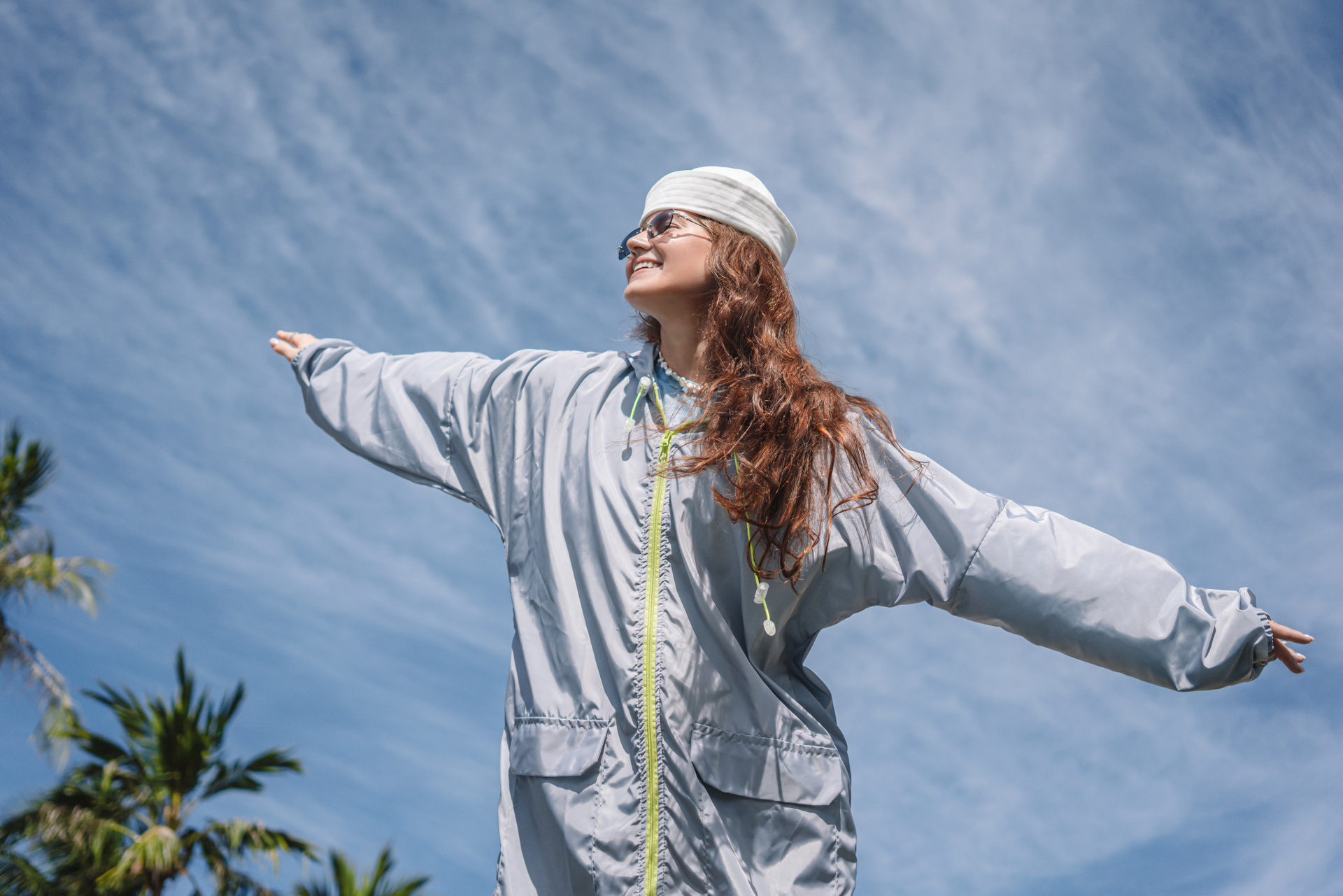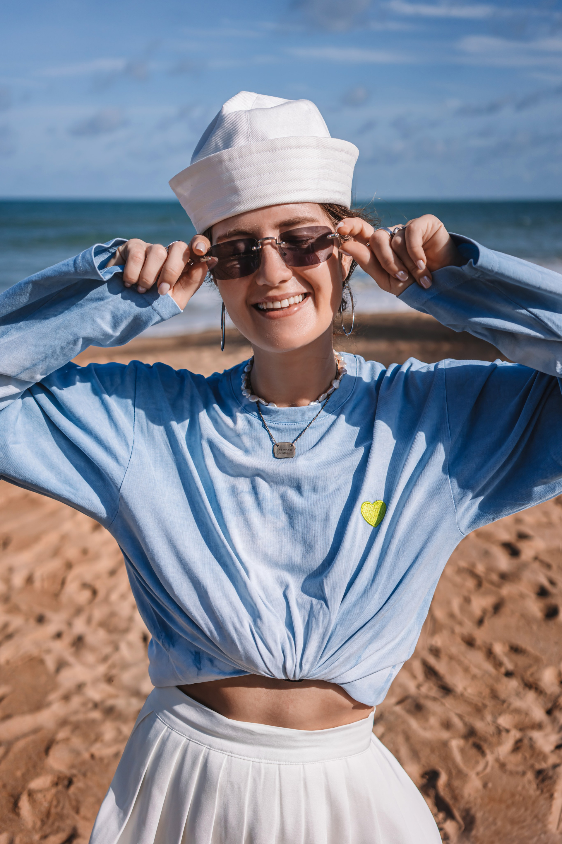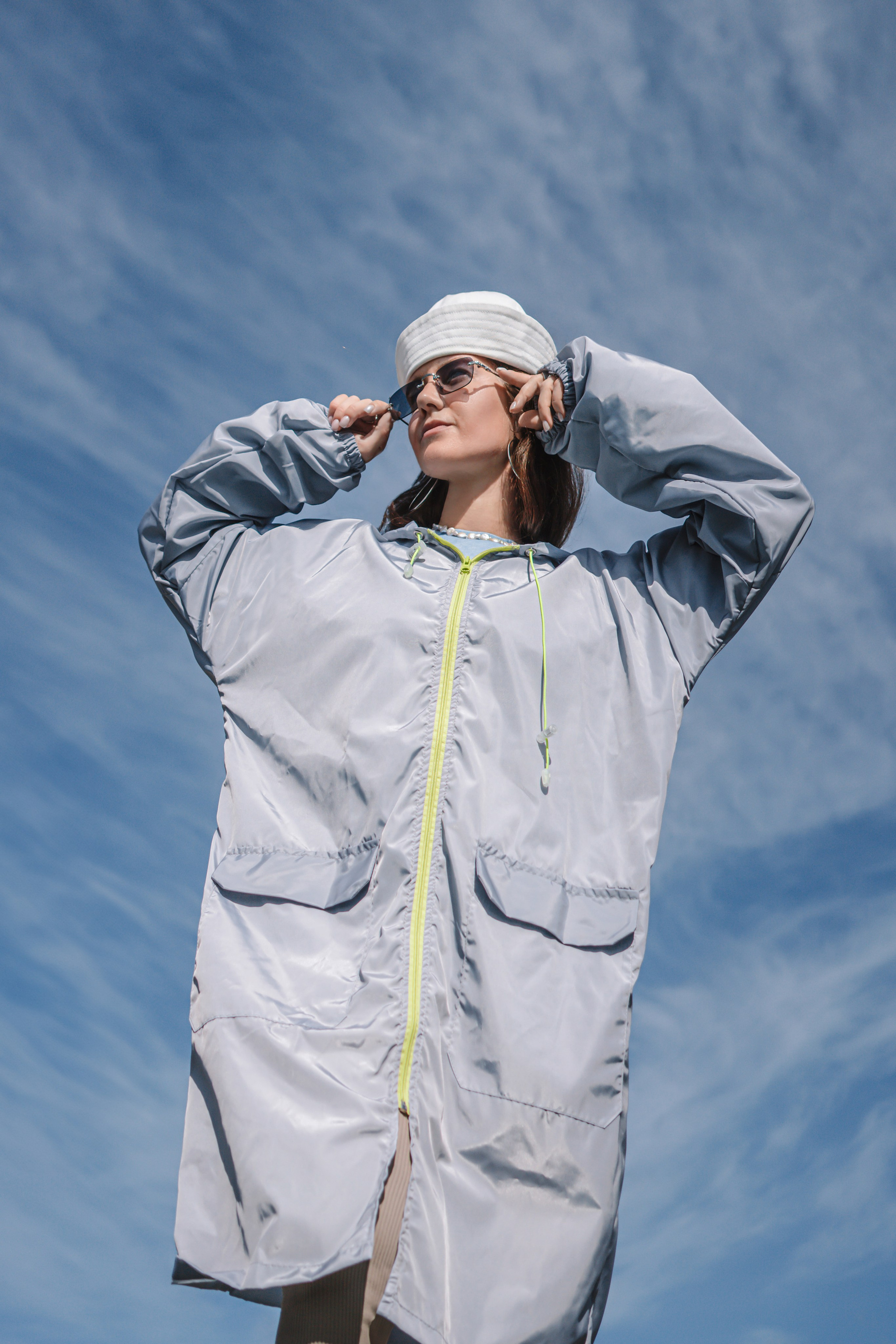 В коллекцию вошли лонгслив с вышивкой — самолетик на рукаве, вместительная сумка, высокие носки, дождевик. Так же коллекцию дополнили бусами для телефона от KrivoKoso.