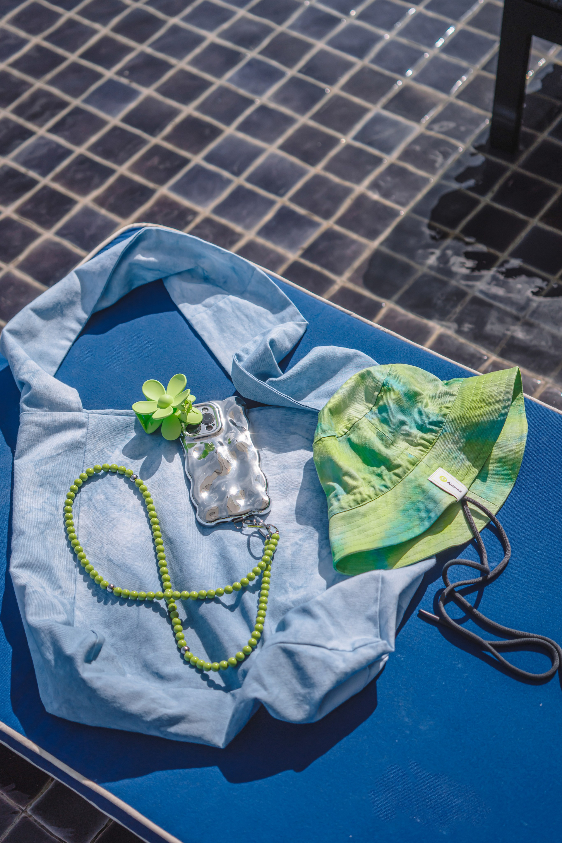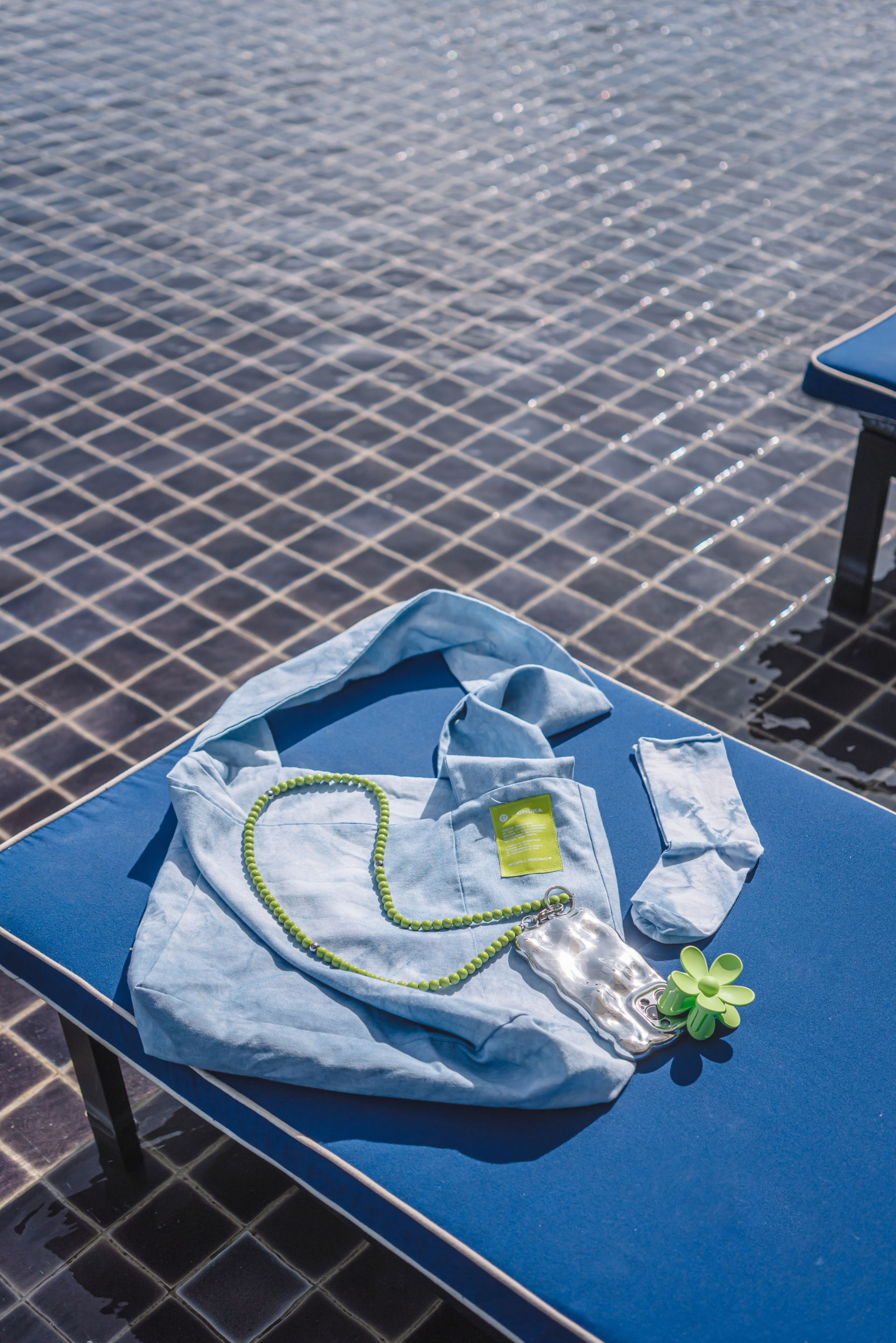 Это была лимитированная коллекция мерча, созданного совместно с брендом Chuka. Все предметы коллекции были окрашены вручную с использованием натуральных красителей, будто расписаны небом.